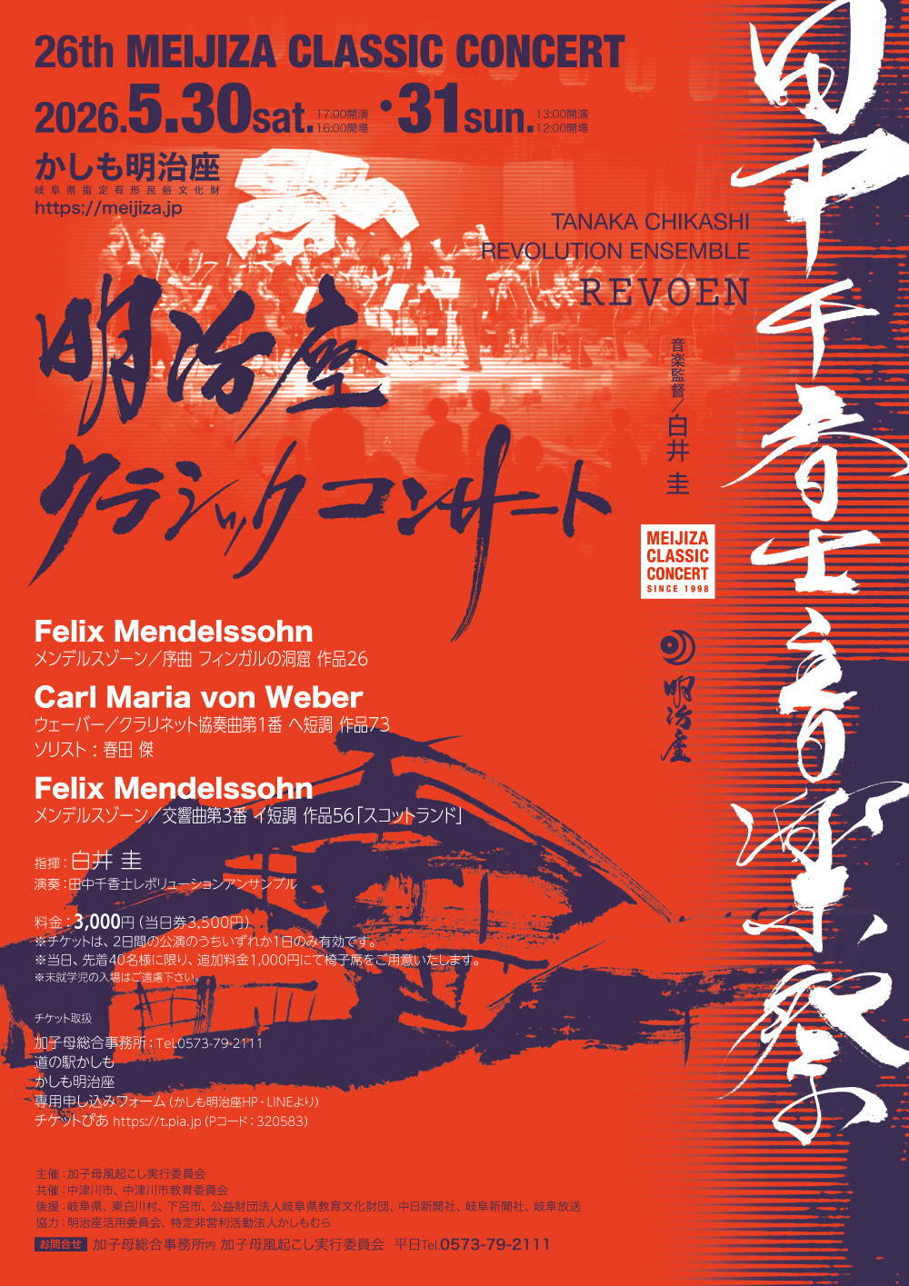 ソリストには春田傑氏を迎え、かしも明治座の空間でしか生まれない響きをお届けします。